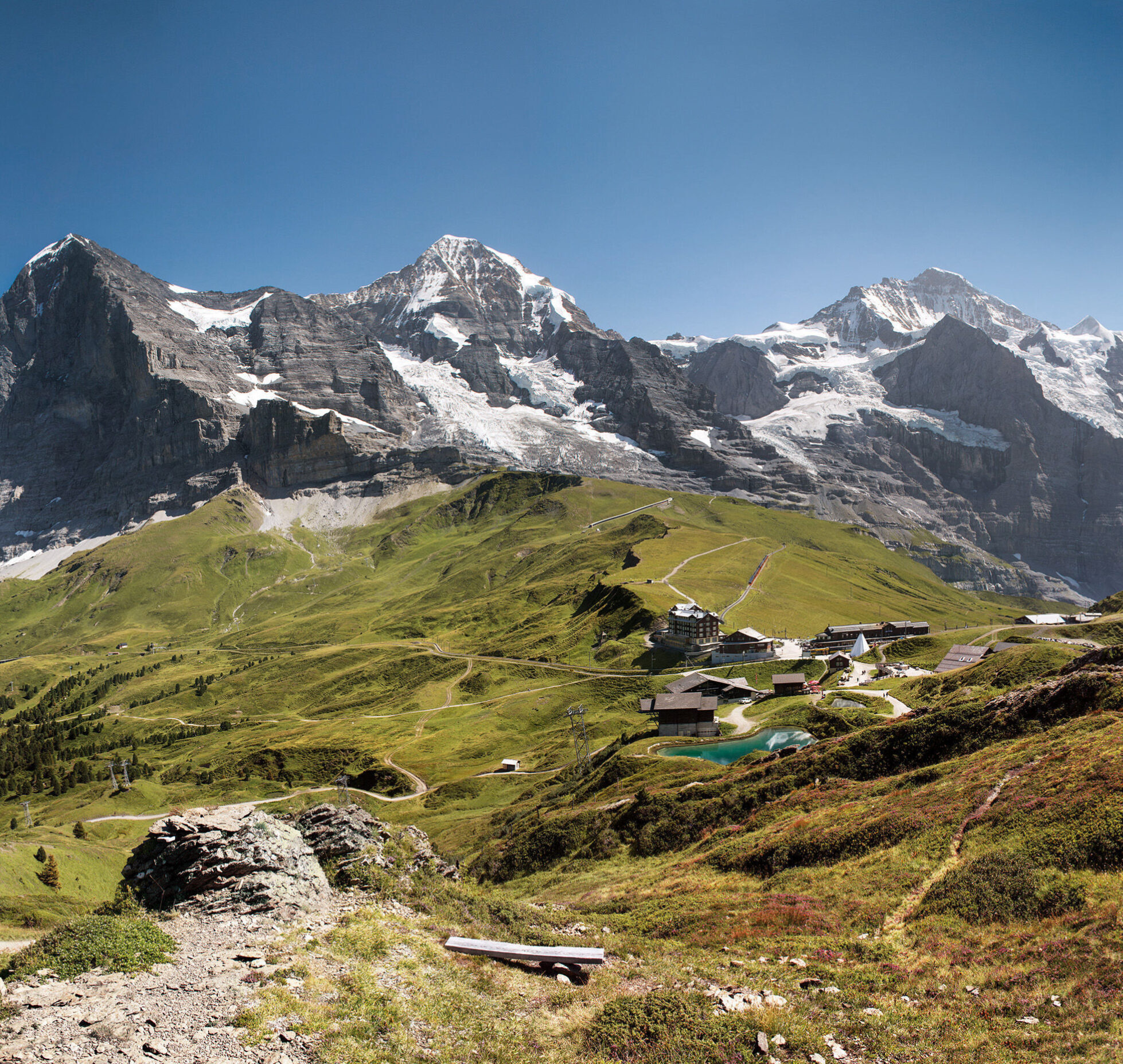 For more than 100 years, the Jungfrau railway has been making its journey to Europe’s highest-altitude railway station at 3454 metres a.s.l. – right at the heart of the UNESCO heritage site “Swiss Alps Jungfrau-Aletsch”. All through the year, the cog railway runs steeply up through a tunnel to the Jungfraujoch from Kleine Scheidegg.
